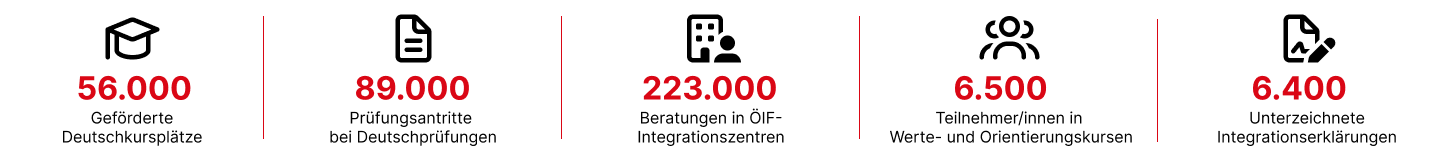Darüber hinaus verantwortet der ÖIF die Werte- und Orientierungskurse, die Abwicklung der Integrationserklärung sowie die Umsetzung der Integrationsvereinbarung für Drittstaatsangehörige.